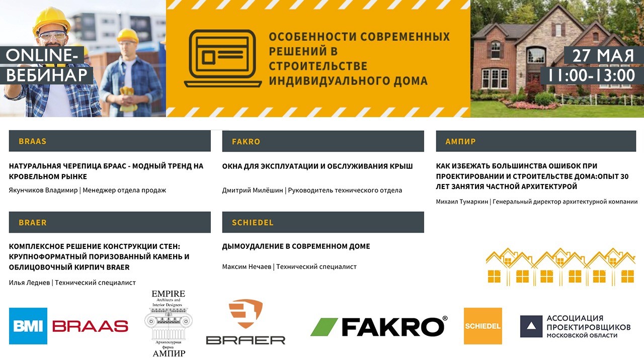 Ведущие строительные бренды и известное архитектурное бюро приглашают принять участие в вебинаре «Особенности современных решений в строительстве индивидуального дома».