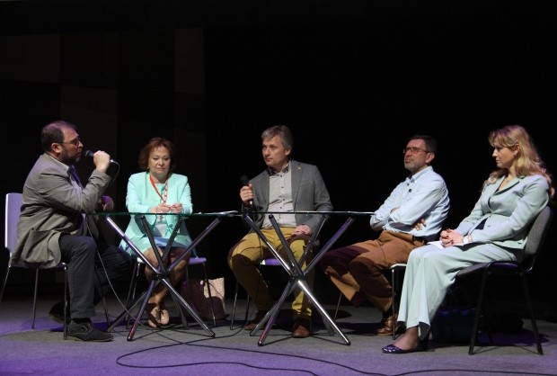 На конференции «Устойчивое развитие территорий» (слева-направо): Дмитрий Наринский (НИУ ВШЭ), Ольга Малинова (ГУП МО «НИИПИ Градостроительства», Илья Машков (АПМО), Кирилл Гладкий (АБ «Остоженка»), Елена Соболева (НИУ ВШЭ)