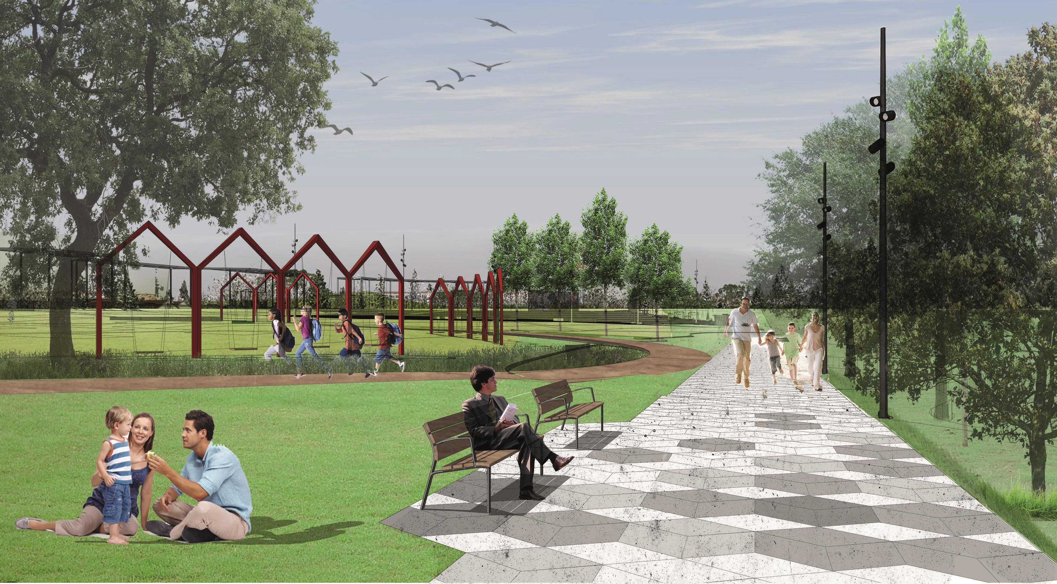 Для организации активного досуга на набережной появятся детские игровые площадки, в спортивной зоне будут оборудованы площадки для йоги и танцев, волейбола, стритбола, а также скалодром и памптрек – специальная велотрасса. Помимо тематических зон различной направленности проект предусматривает организацию полноценной велоинфраструктуры, включающей велодорожку и пункты велопарковки, а также создание бегового маршрута - двухполосная беговая дорожка, проходящая через все зоны парка, будет оснащена специальным покрытием.