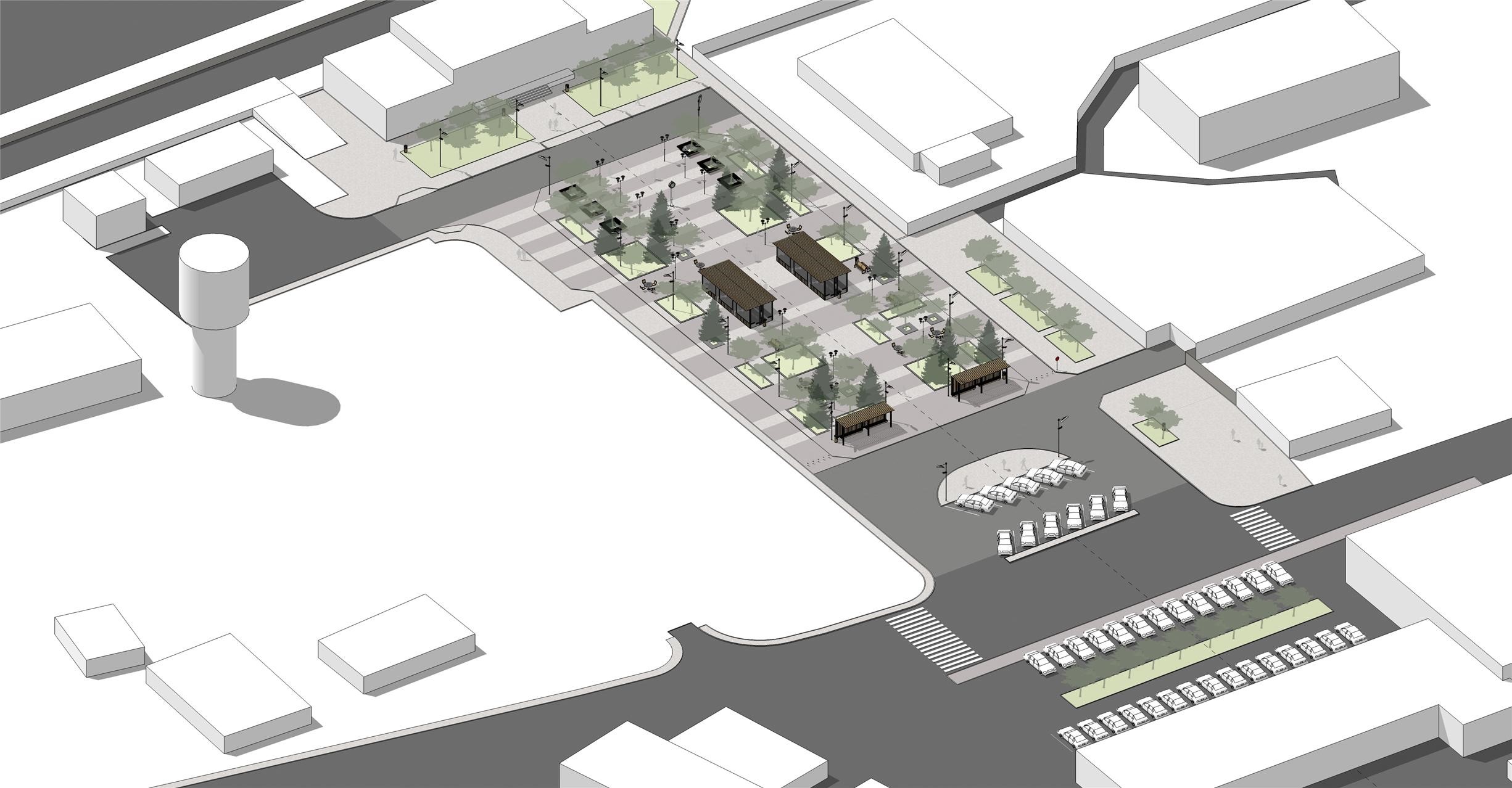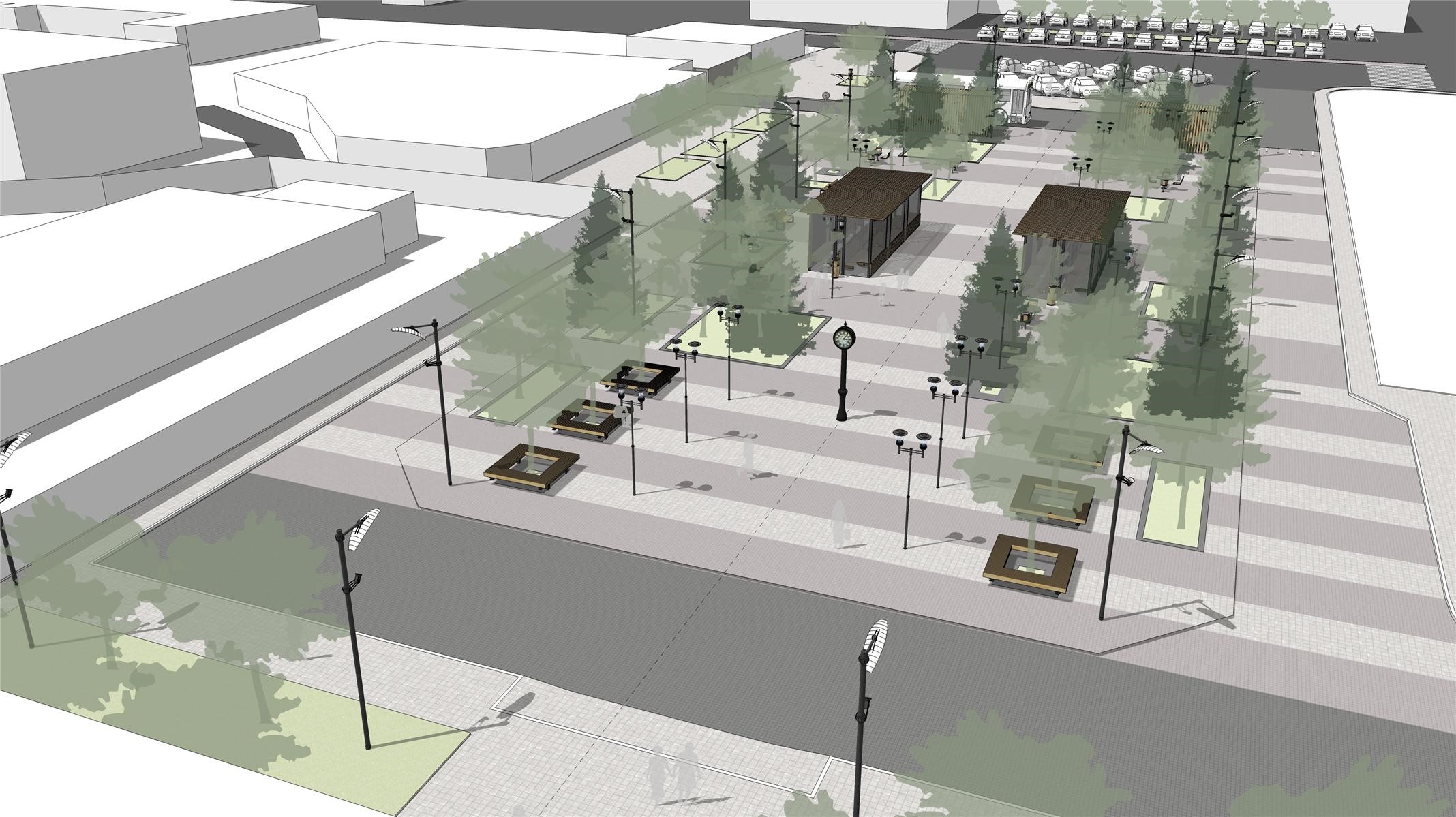 Согласно проекту, разработанному ООО «Пирамида», пространство перед вокзалом благоустроят и дополнят озеленением. Территорию сквера расширят, устроят зеленую аллею с мощением, лавочками, освещением и современными торговыми павильонами для комфортного ожидания транспорта пассажирами. Автобусную остановку и парковку для автомобилей перенесут ближе к улице Волоколамская.