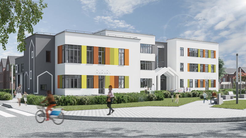 В Наро-Фоминском городском округе, в г.п. Апрелевка, на улице Декабристов построят детский сад с цветными фасадами. Вместе с расположенной рядом школой они образуют новый образовательный кластер с благоустроенной территорией.
