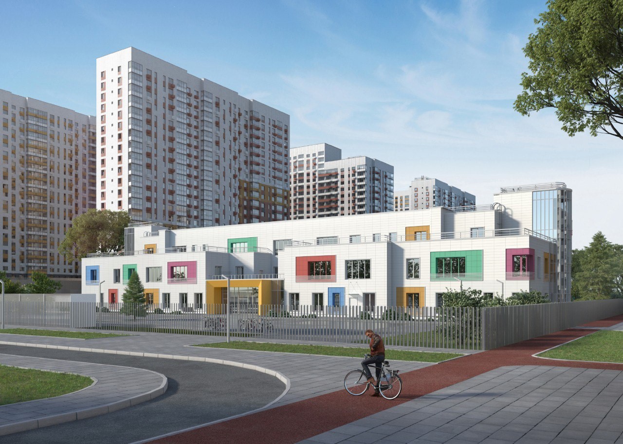 «Простую форму параллелепипеда авторам удалось разнообразить введением активных цветовых пятен и рельефом, который создается за счет перепада высот отдельных частей здания. Цветовыми акцентами выделены некоторые оконные блоки, что корреспондируется с фасадными решениями жилого комплекса по соседству. Таким образом, детский сад органично вписан в формирующуюся застройку поселка. А «пятый фасад» детского сада – кровля, видимая из окон жилых зданий – будет оформлен по мотивам картин Пита Мондриана», – пояснила главный архитектор Московской области Александра Кузьмина.