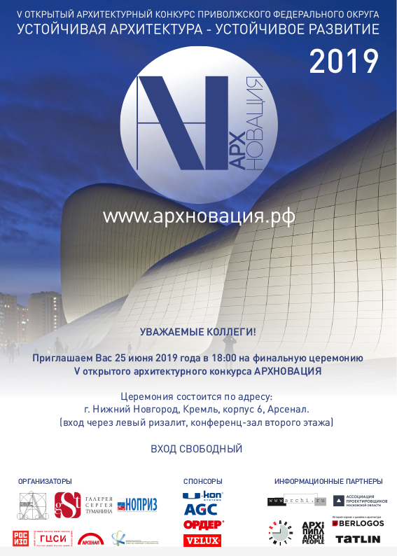 Открытый архитектурный конкурс Приволжского федерального округа «АРХНОВАЦИЯ V» приглашает на финальную церемонию награждения победителей.
