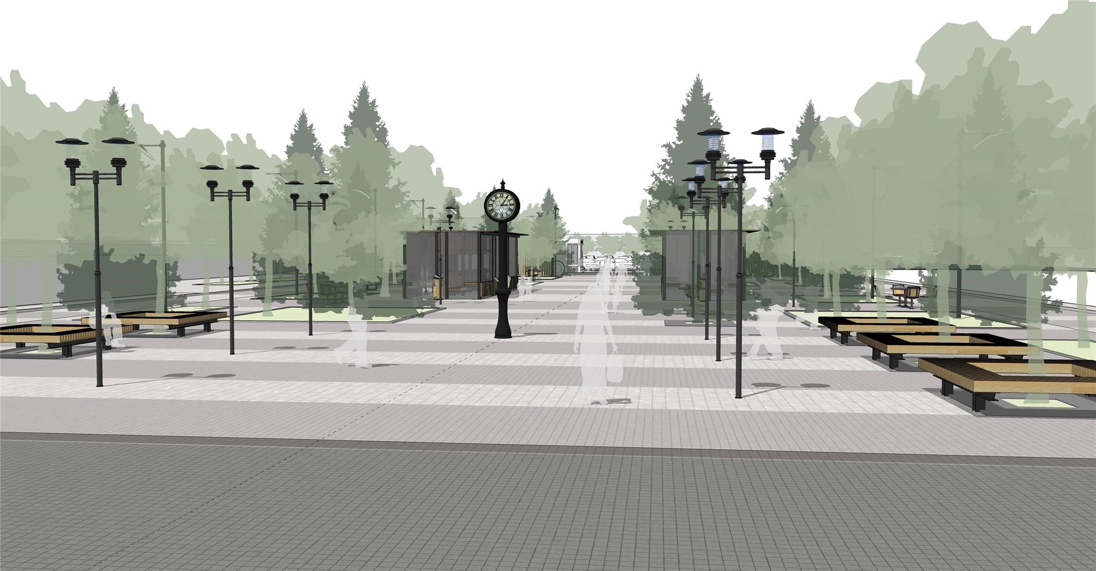 Согласно проекту, разработанному ООО «Пирамида», пространство перед вокзалом благоустроят и дополнят озеленением. Территорию сквера расширят, устроят зеленую аллею с мощением, лавочками, освещением и современными торговыми павильонами для комфортного ожидания транспорта пассажирами. Автобусную остановку и парковку для автомобилей перенесут ближе к улице Волоколамская.