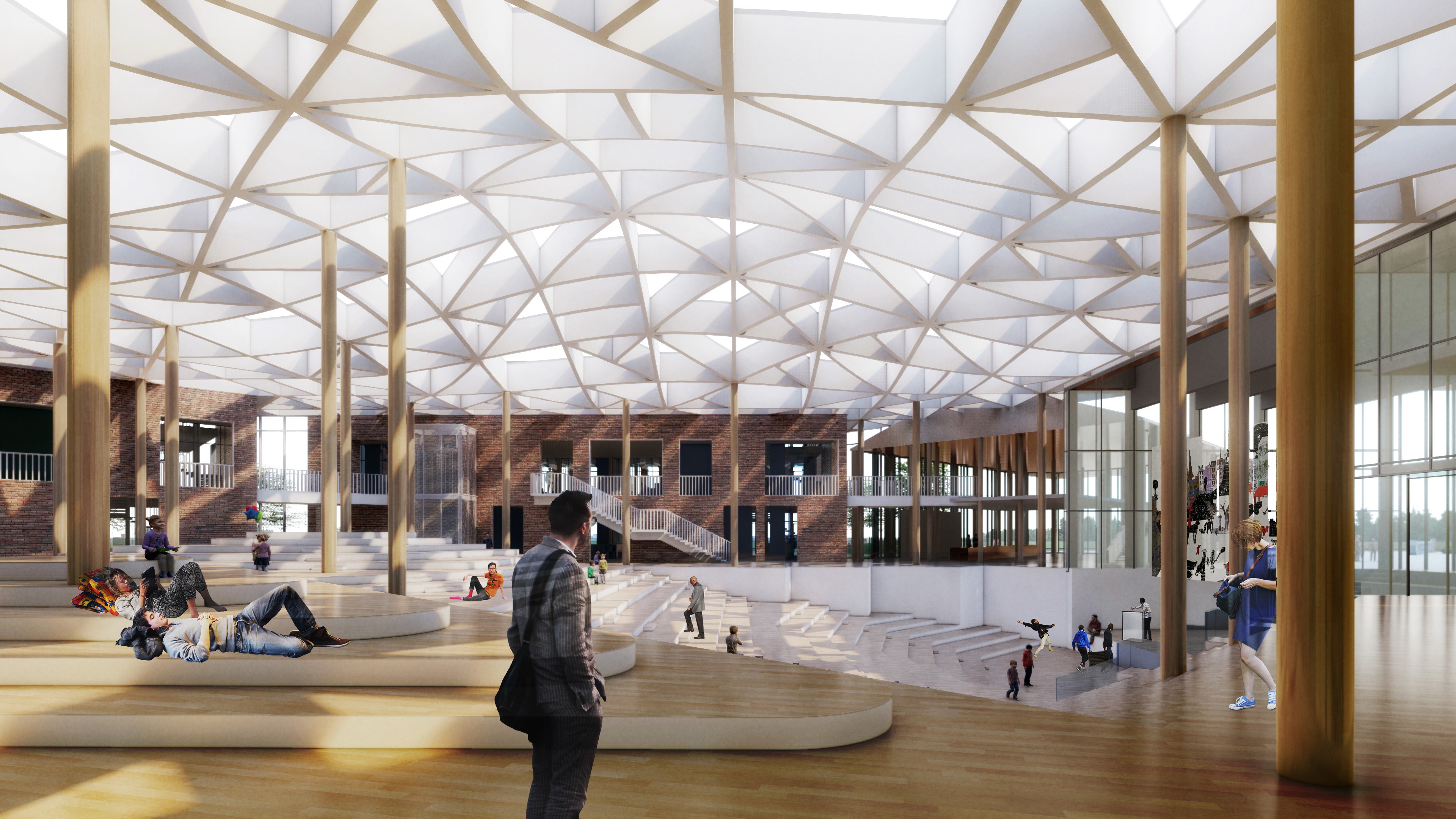 «Работа с этой неординарной школой стала продолжением нашего опыта проектирования необычных объектов таких, как Образовательный центр «Сириус» и Академия танца Бориса Эйфмана. Особенности фондирования гимназии, в которую на кратковременные программы будут приезжать дети из разных регионов, легли в основу решения с многофункциональным атриумом, который становится главным местом общения и аккумулирует творческую энергию учащихся. В современных школах мы все чаще фокусируемся именно на этой стороне жизни – как происходит взаимодействие учеников между и после уроков», – рассказал архитектор проекта Иван Кожин.