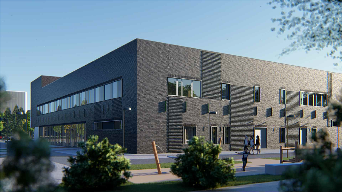 Прилегающая территория будет благоустроена. Рядом с новым зданием появятся детские площадки и комфортные пешеходные подходы с освещением.