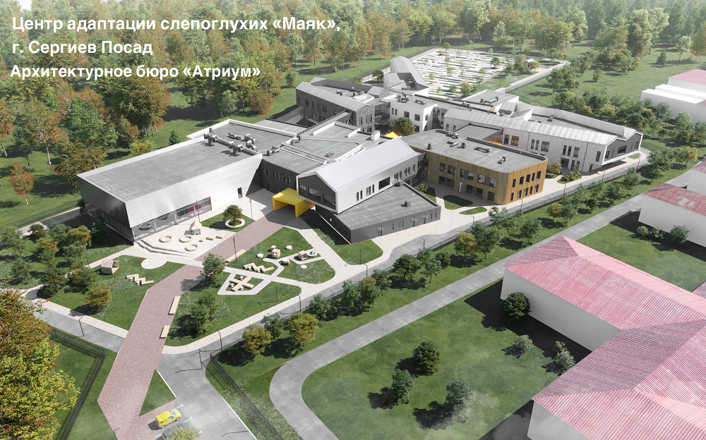 В этом году в конкурсе Build School Project участвовали семь проектов от Московской области. Уникальный проект Центра адаптации слепоглухих молодых людей «Маяк» в г. Сергиев Посад, спроектированный бюро «Атриум», удостоен серебряного диплома конкурса. Предложенная архитекторами нерегулярная структура здания и разнообразие пространств выступают для людей с ограничениями по слуху и зрению прототипом города и обучают навыкам взаимодействия с окружающей средой. Для каждого функционального блока авторами был разработан свой уникальный тактильный код с помощью отделочных материалов, помогающий адаптации и обучению.