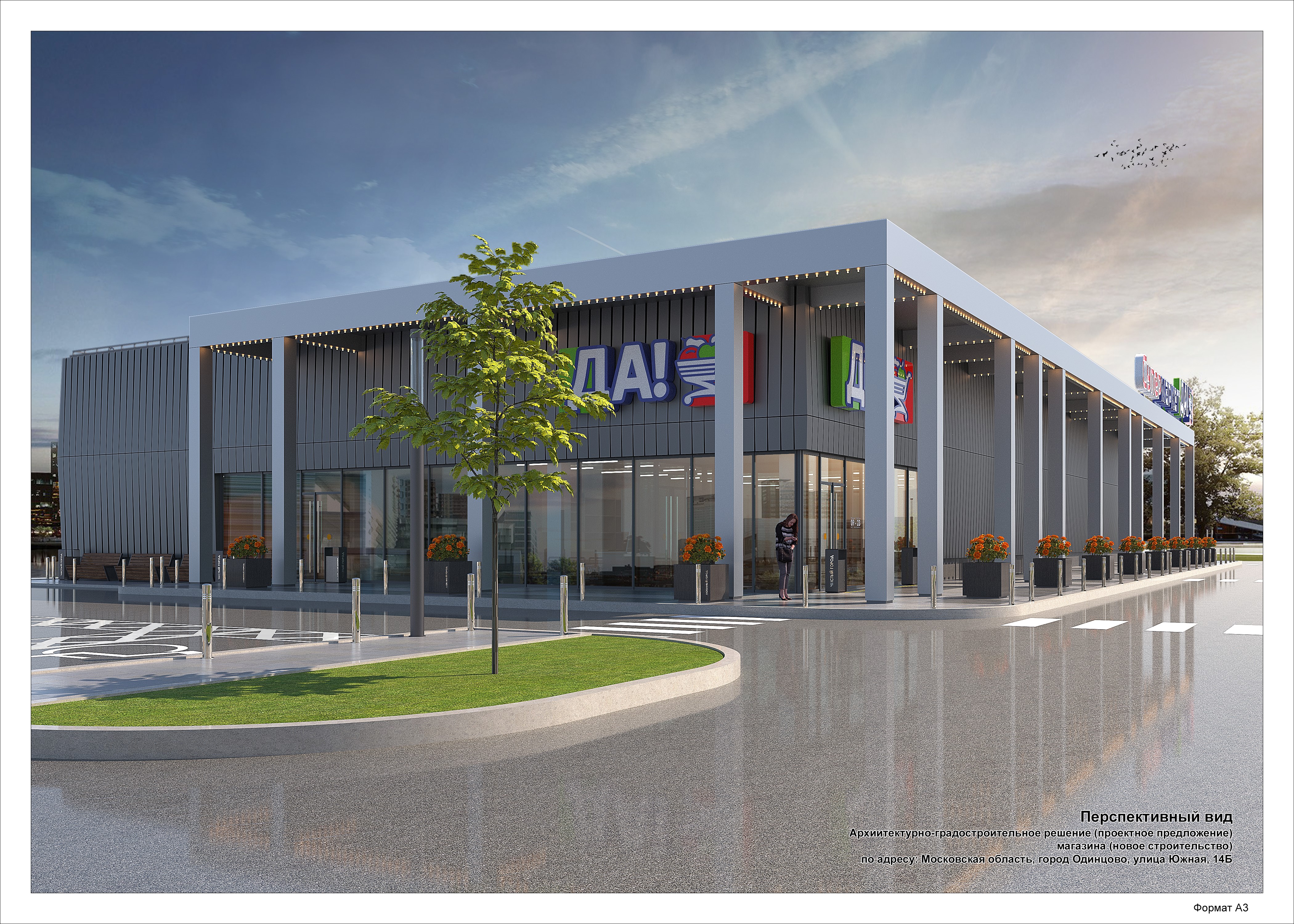Архитектурно-градостроительный облик продовольственного магазина сети «Да» в городском округе Одинцово утвержден в Комитете по архитектуре и градостроительству. Торговый объект планируется построить по адресу: улица Южная, д.14 б.
