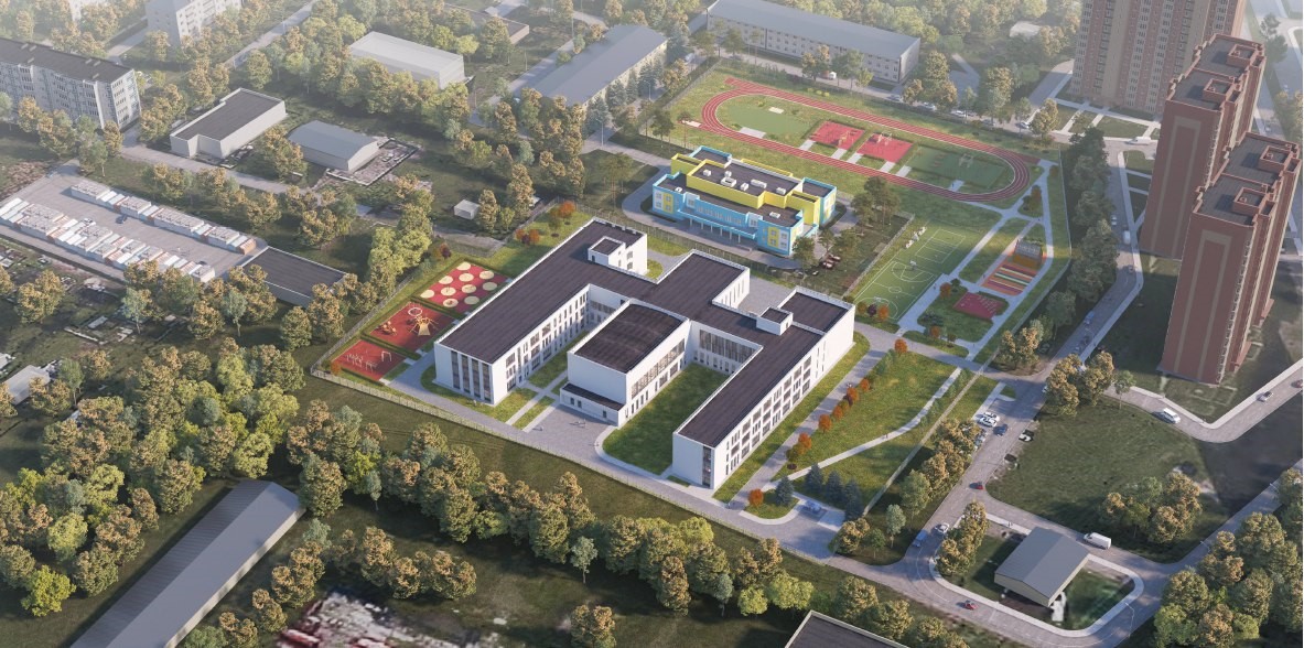 Общая площадь трехэтажного здания составит порядка 10800 кв.м. На участке, помимо здания школы, будет построено спортивное ядро со стадионом, полем для мини-футбола и площадками, учебно-опытная зона.