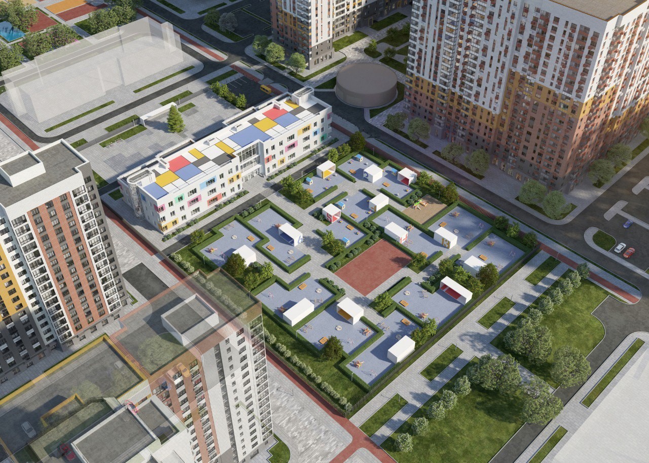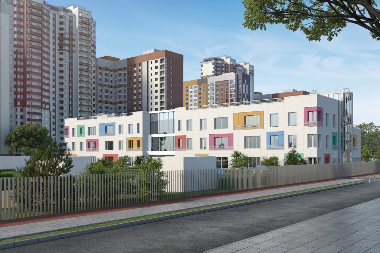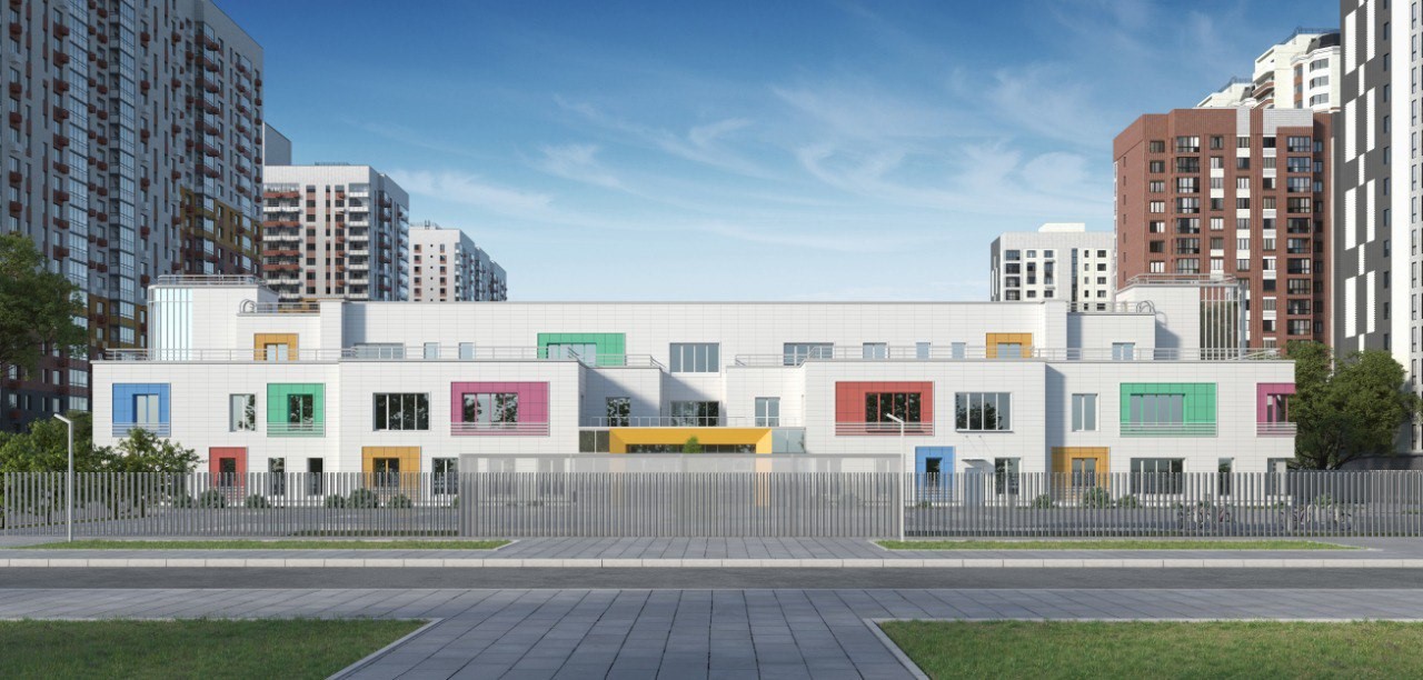«Простую форму параллелепипеда авторам удалось разнообразить введением активных цветовых пятен и рельефом, который создается за счет перепада высот отдельных частей здания. Цветовыми акцентами выделены некоторые оконные блоки, что корреспондируется с фасадными решениями жилого комплекса по соседству. Таким образом, детский сад органично вписан в формирующуюся застройку поселка. А «пятый фасад» детского сада – кровля, видимая из окон жилых зданий – будет оформлен по мотивам картин Пита Мондриана», – пояснила главный архитектор Московской области Александра Кузьмина.