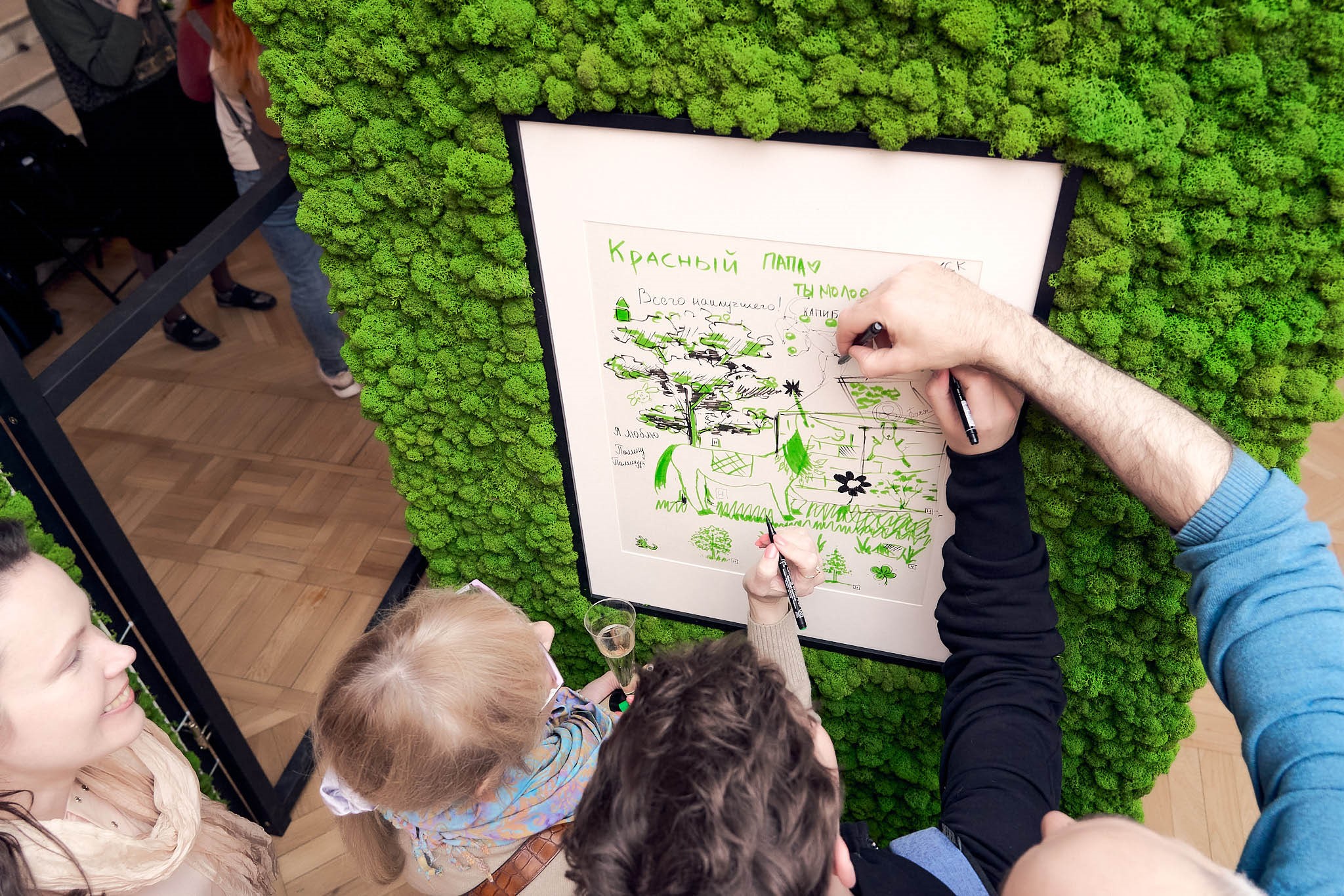 Атмосфера на выставке была искренней и радушной. Много хороших и теплых слов было сказано в адрес создателей проекта. Коллеги и друзья делились впечатлениями о выставке, а эксклюзивная фотозона из мха пришлась по душе всем посетителям.