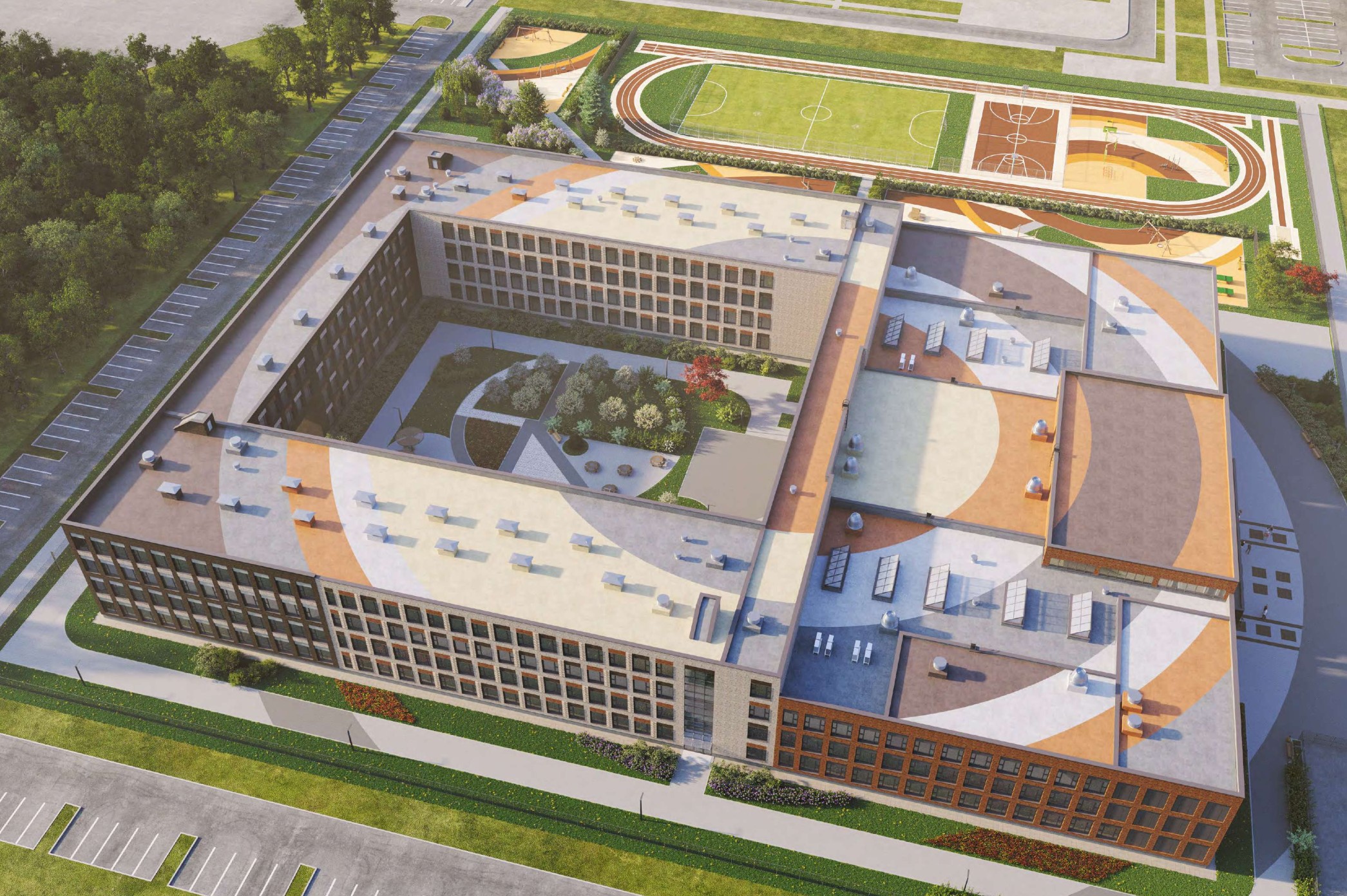 «Масштабный проект новой школы на 2000 мест вместе со строящимися поблизости двумя детскими садами по 350 мест каждый формирует современный образовательный кластер. Общая площадь четырехэтажного здания будущей школы порядка 30 тысяч квадратных метров. Помимо учебных кабинетов основного образовательного профиля предусмотрен актовый зал на 810 мест, 4 спортивных зала разной площади, библиотека, лабораторные помещения, мастерские по обработке дерева и металла, кабинет домоводства и кулинарии», – рассказал министр Правительства Московской области по архитектуре и градостроительству Владислав Гордиенко.