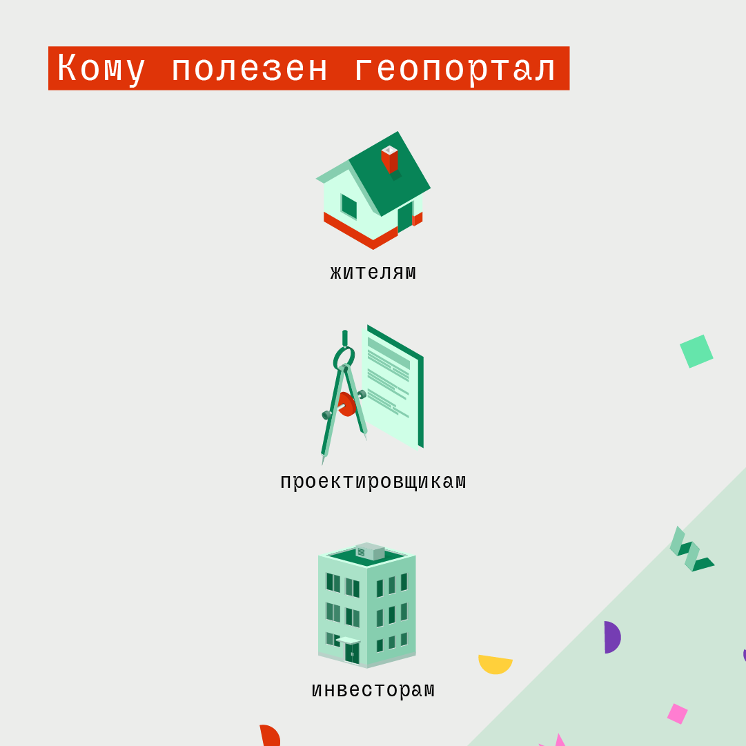 Геопортал , реализованный Мособлархитектурой совместно с ГБУ МО «Мособлгеотрест». Ресурс создан для жителей, инвесторов и специалистов для оценки градостроительного потенциала интересующей их территории.