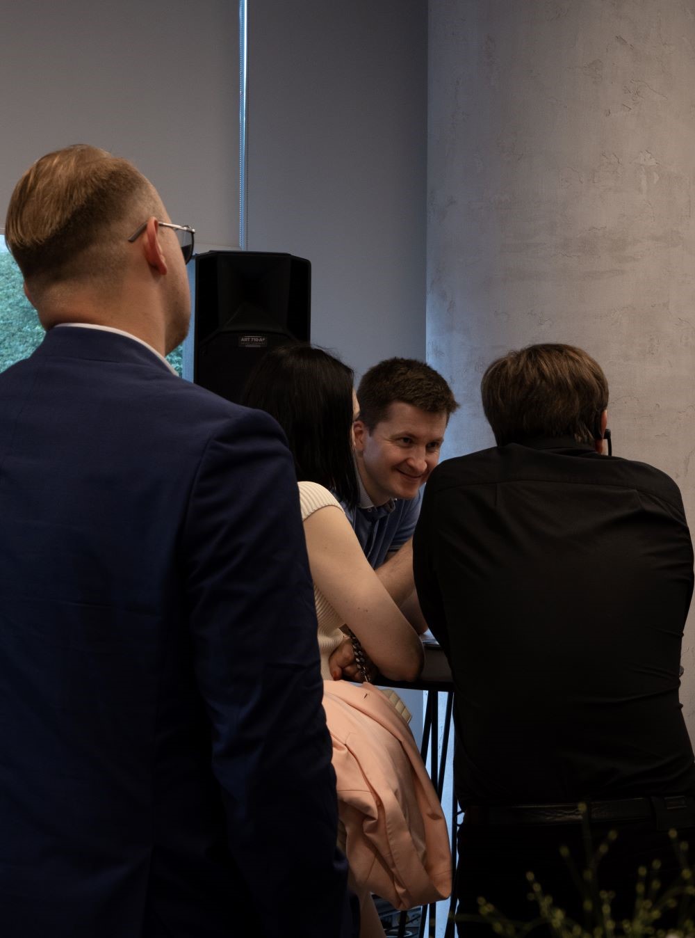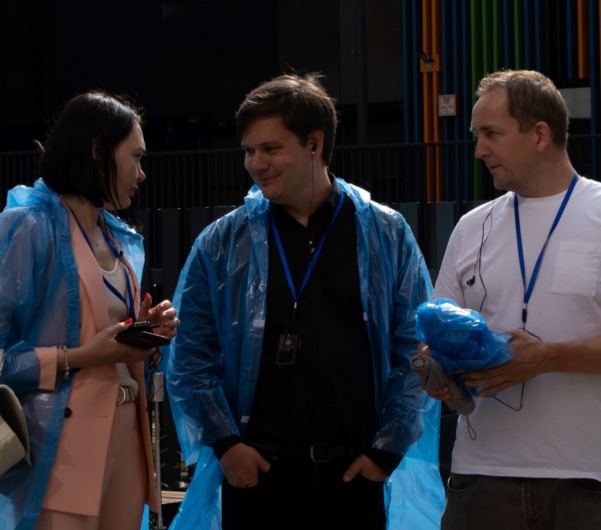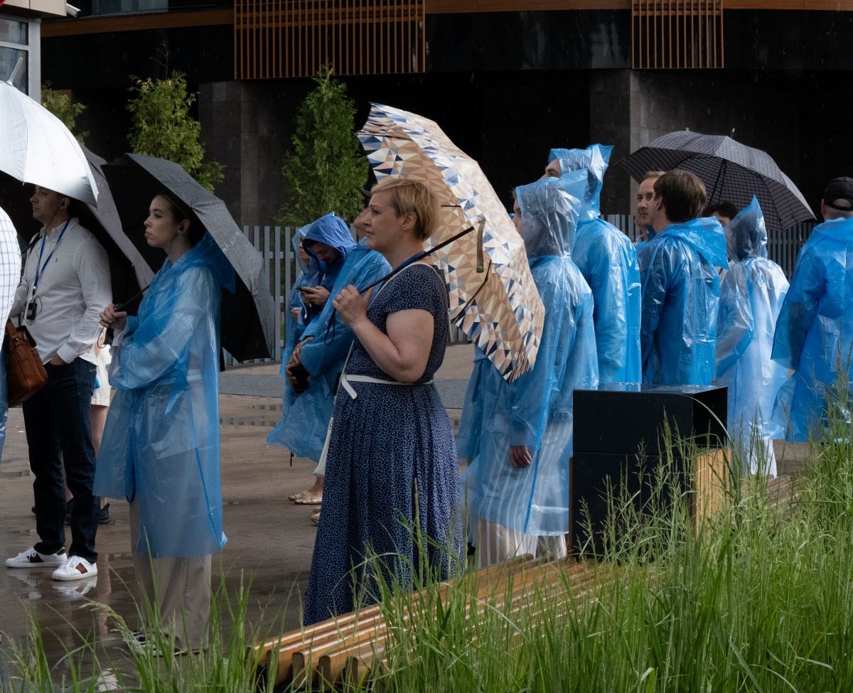 Обойдя комплекс под рассказы автора проекта об особенностях работы над проектом и сложностях реализации, которые были успешно преодолены по ходу строительства, успев обсохнуть на солнце, выглянувшем после ливня, архитекторы смогли задать Станиславу Кулишу вопросы, послушали выступления компаний "Алкотек", BRAER, Glass Wall, архитектора Дмитрия Пшеничникова (бюро Пшеничникова), рассказавшего о концепции крупного спортивного центра в западной части Крыма, и представителей бюро "Мезонпроект" Илью Машкова и Петра Топчиева, познакомивших коллег с путями поиска архитектурных решений реализующегося в настоящее время Многофункционального центра на подмосковном Новорижском шоссе. После всего гости долго и по-дружески общались, не торопясь расставаться.